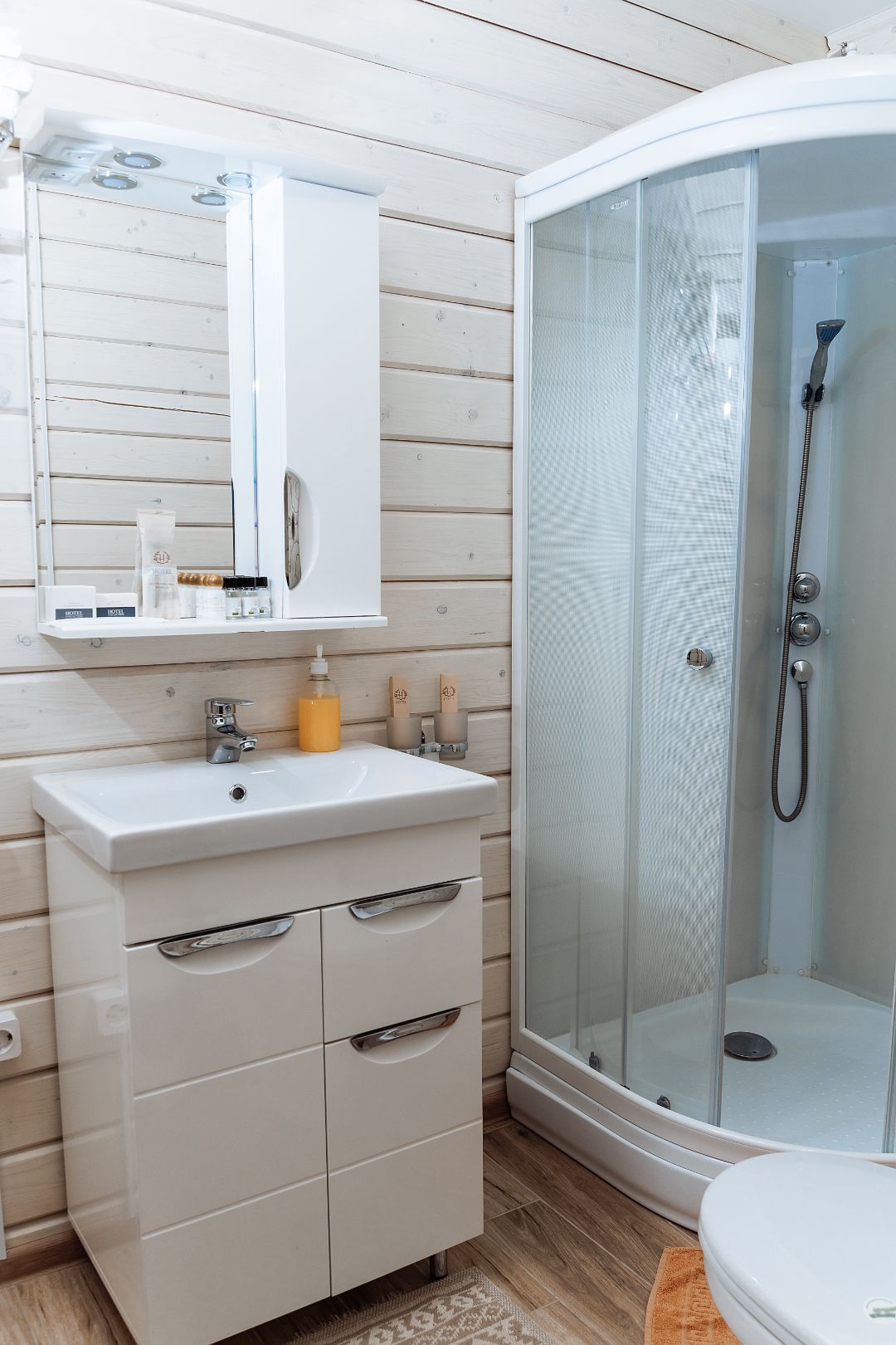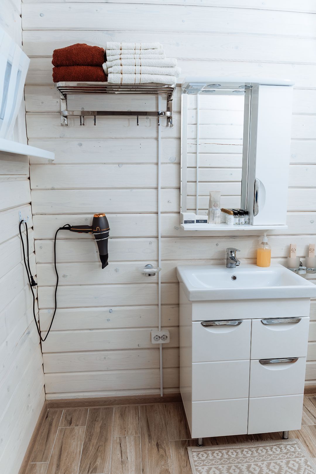 Совмещенный санузел в номере, комплект полотенец,халат, тапочки, фен, туалетные принадлежности